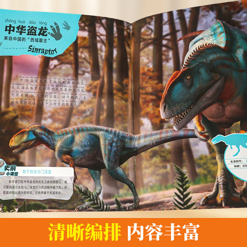 恐龙大百科全书‼绘图逼真,300多种恐龙知识点,知识体系全面!一秒穿越远古代,加注拼音,让小朋友学习自主阅读