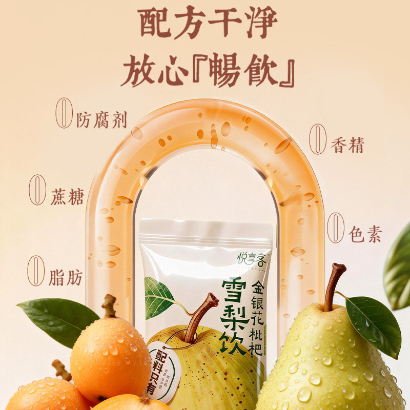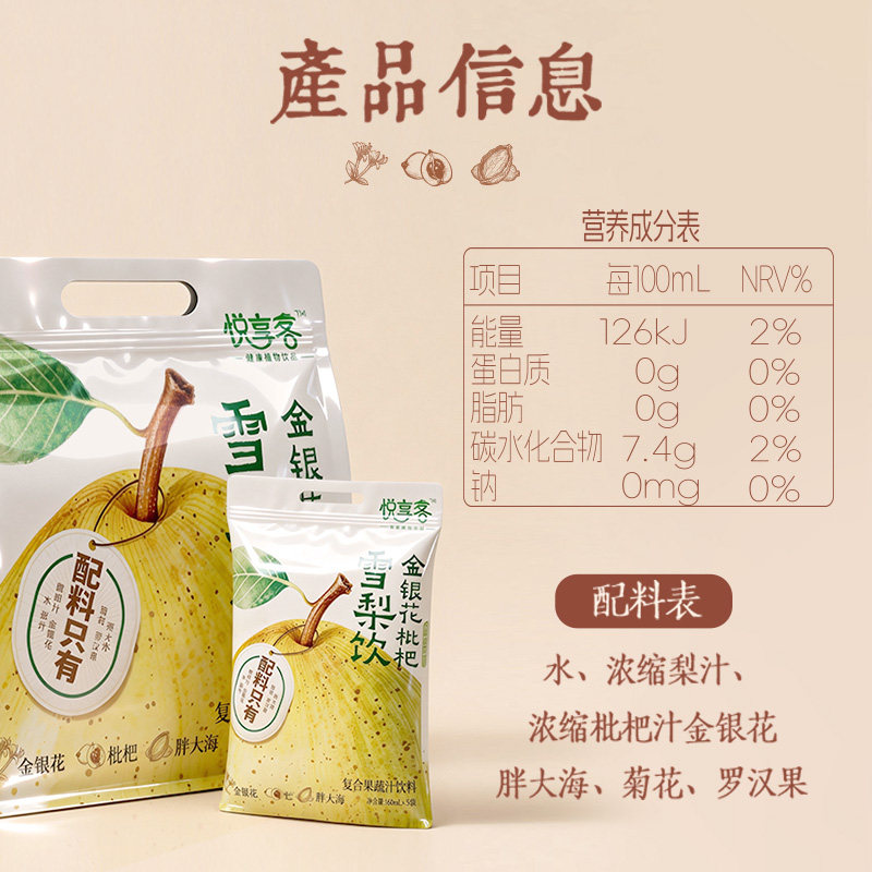 【叠金币12.9元】悦享客金银花枇杷雪梨饮,160ml*10袋便携装,0添加更健康,清润养肺,随身畅饮好方便!
