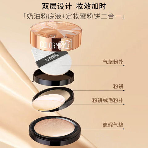 彩镜小金盒双层气垫遮瑕提亮滋润养肤便携补妆