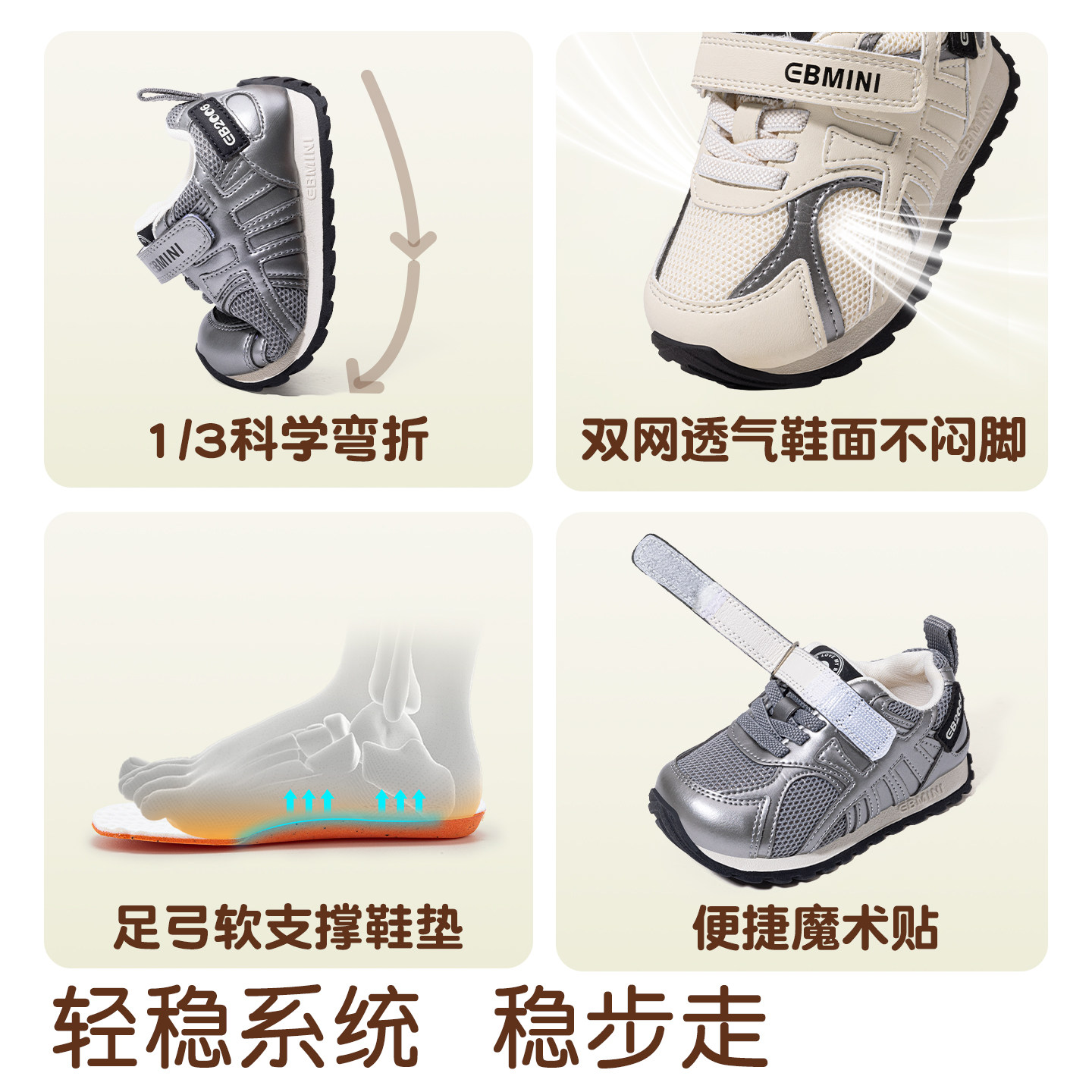 2026新款英贝米尼男宝宝机能跑鞋,轻便舒适,适合日常运动与休闲。透气设计,呵护宝宝小脚,柔软防滑底,行动更灵活!