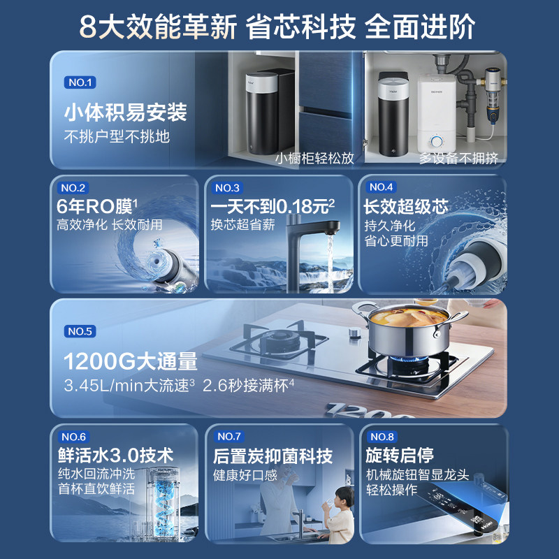 海尔鲜活水超级芯净水器家用直饮机厨房自来水过滤家庭净水器R12