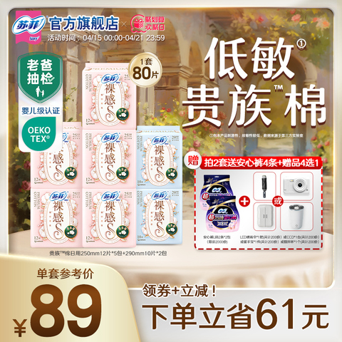 苏菲卫生巾裸感S贵族™棉纯棉敏感肌日夜用正品