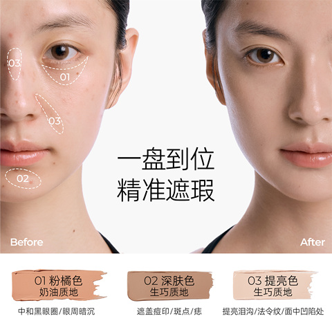 【活动价格89-10.7官方立减-5元优惠券-4.45淘金币=68.85】三效气垫遮瑕膏遮盖斑点痘印黑眼圈提亮,三色双质、精修狙击,分区定制、隐匿瑕疵,超赞!三效气垫遮瑕膏。遮盖斑点痘印,轻松无痕。黑眼圈不见了,眼睛更有神。提亮肌肤,无凹凸不平