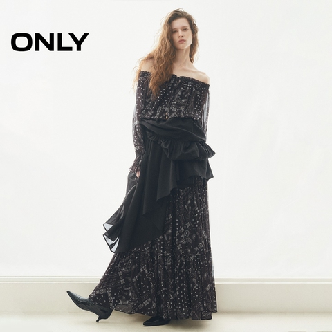 ONLY2026夏季新款复古伞裙半身裙波西风腰果印花设计长款裙子女