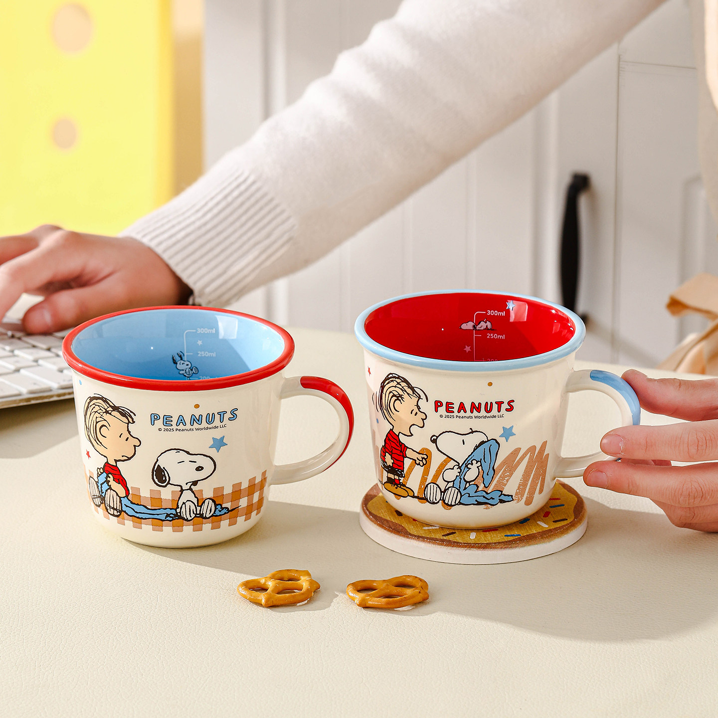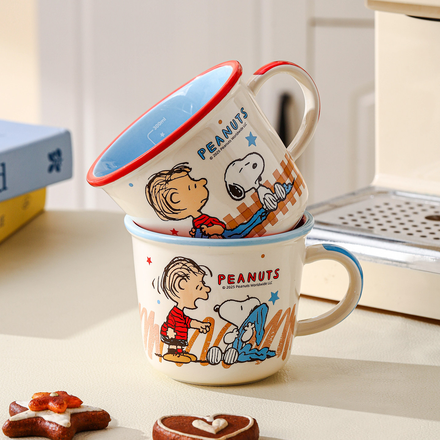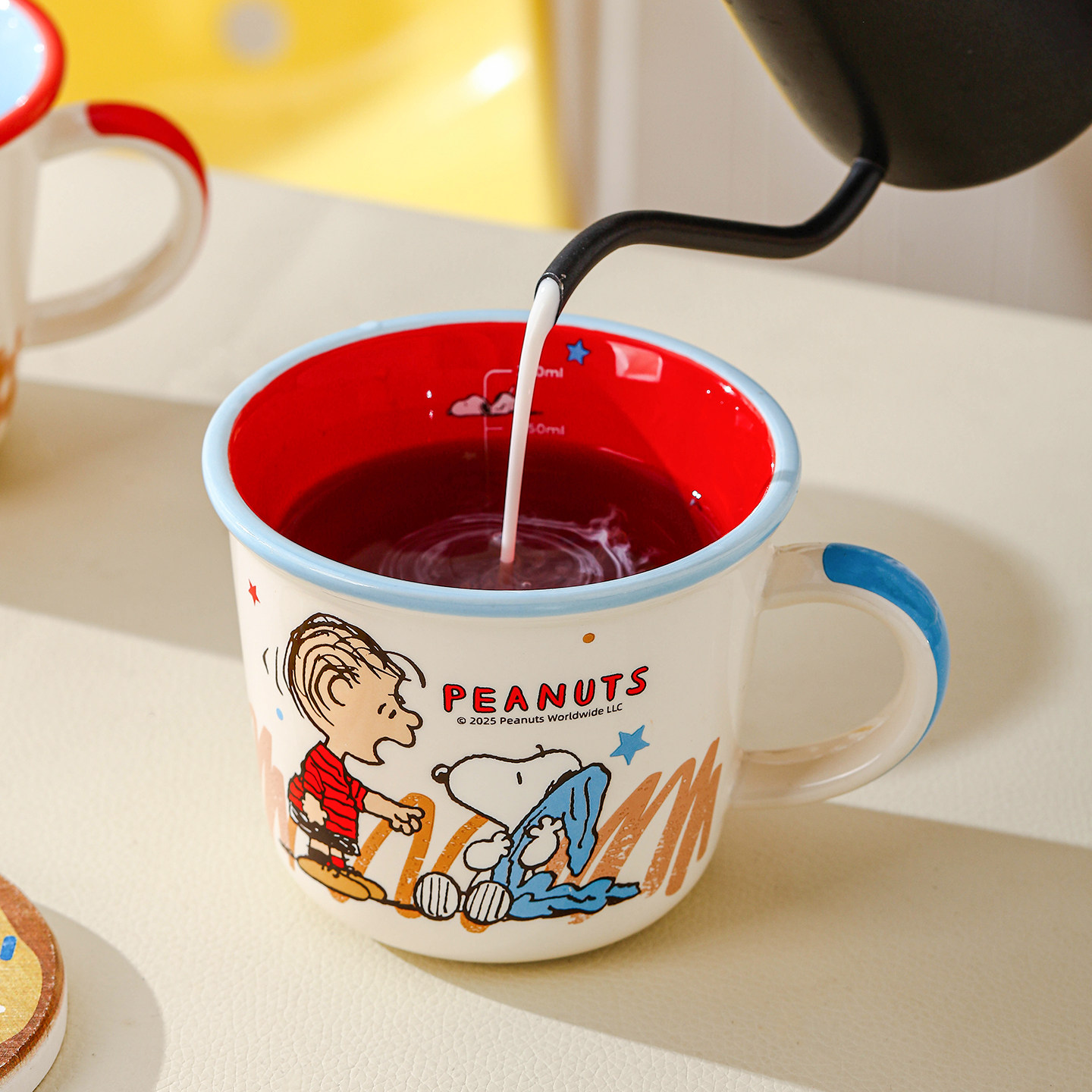 史努比阿贝贝系列牛奶刻度杯彩盒装卡通带把手马克杯早餐牛奶杯
