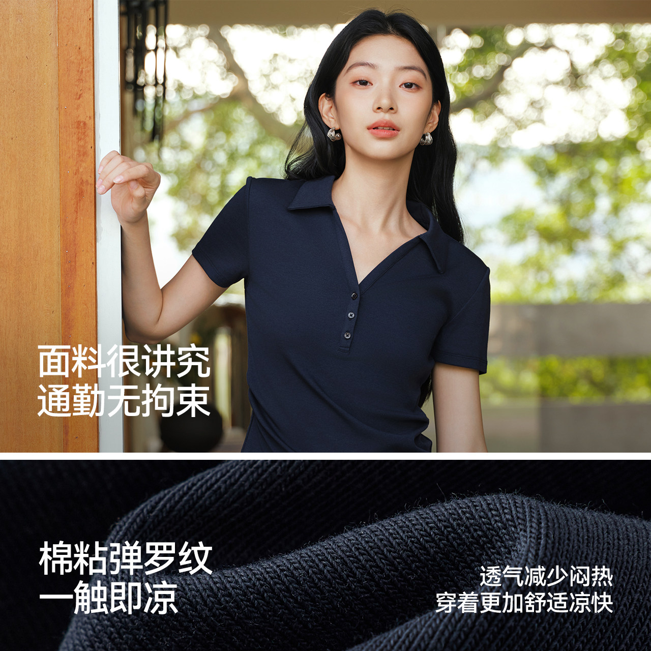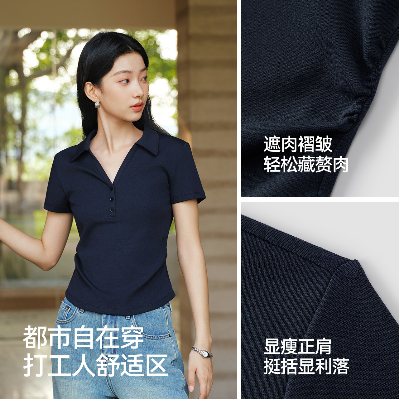森马凉感紧身褶皱短款POLO衫女