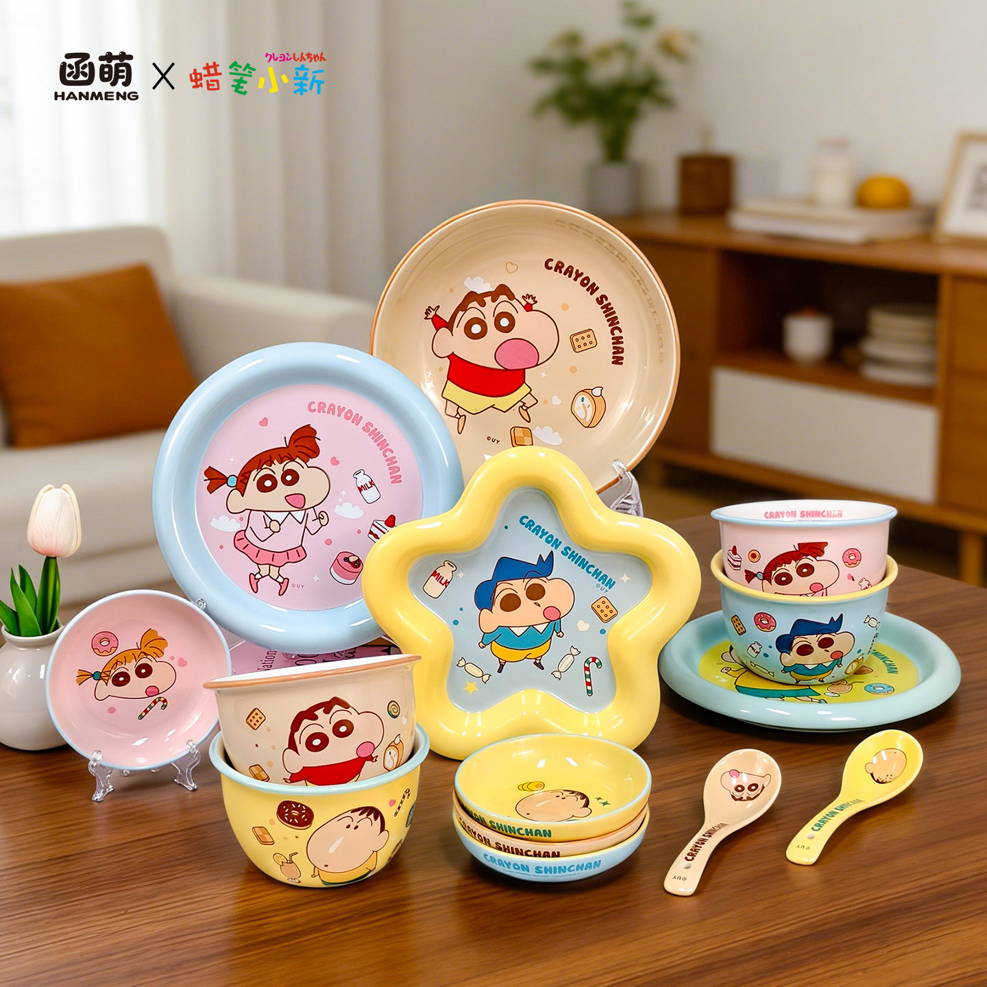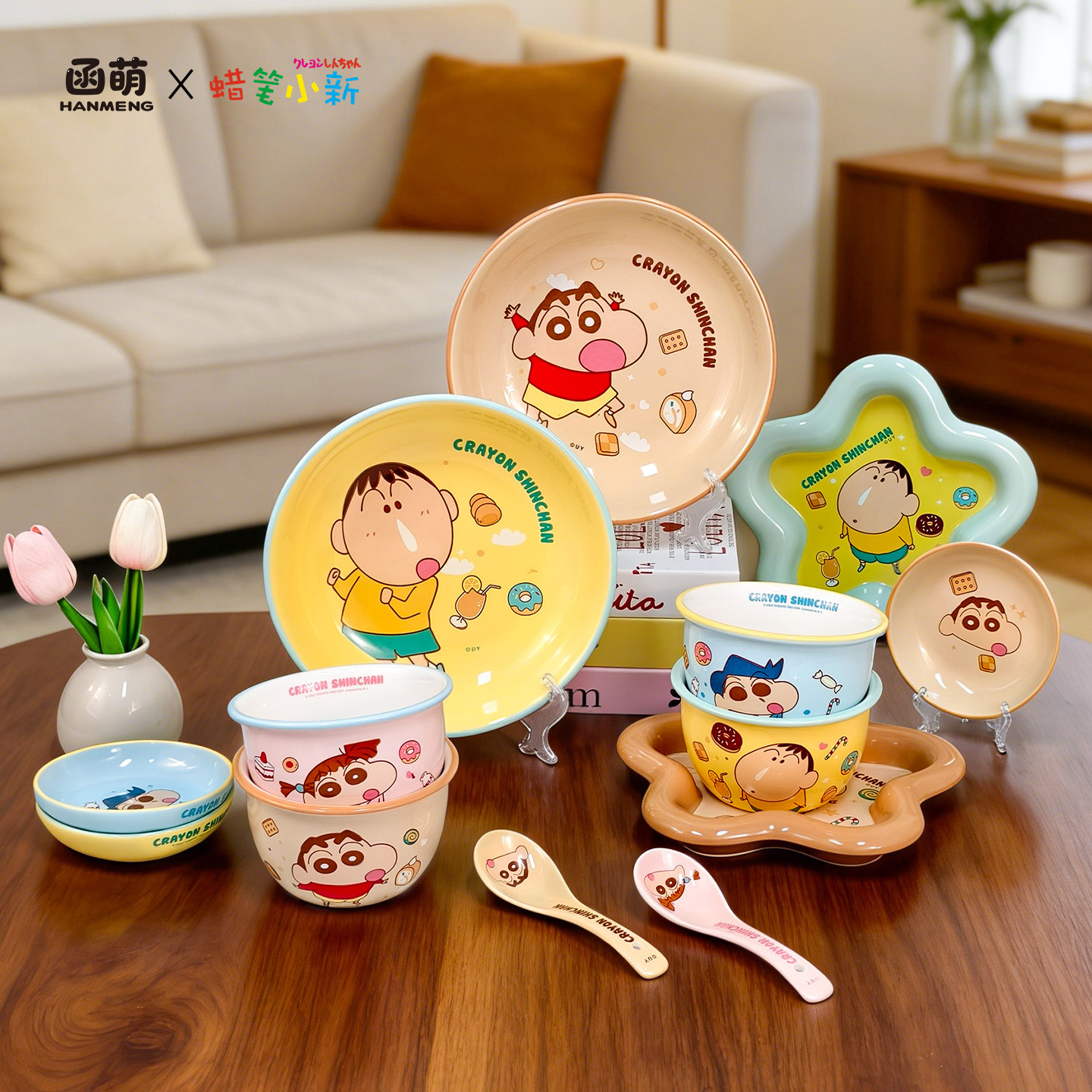 【立减10】正版联名蜡笔小新朋友系列陶瓷餐具,四机皆可进,安全釉面+圆润无棱角设计,萌趣高颜值,专为儿童与一人食场景打造~餐盘、饭碗、小勺、水杯、筷子,清洁工具随盒附赠,实用又省心~