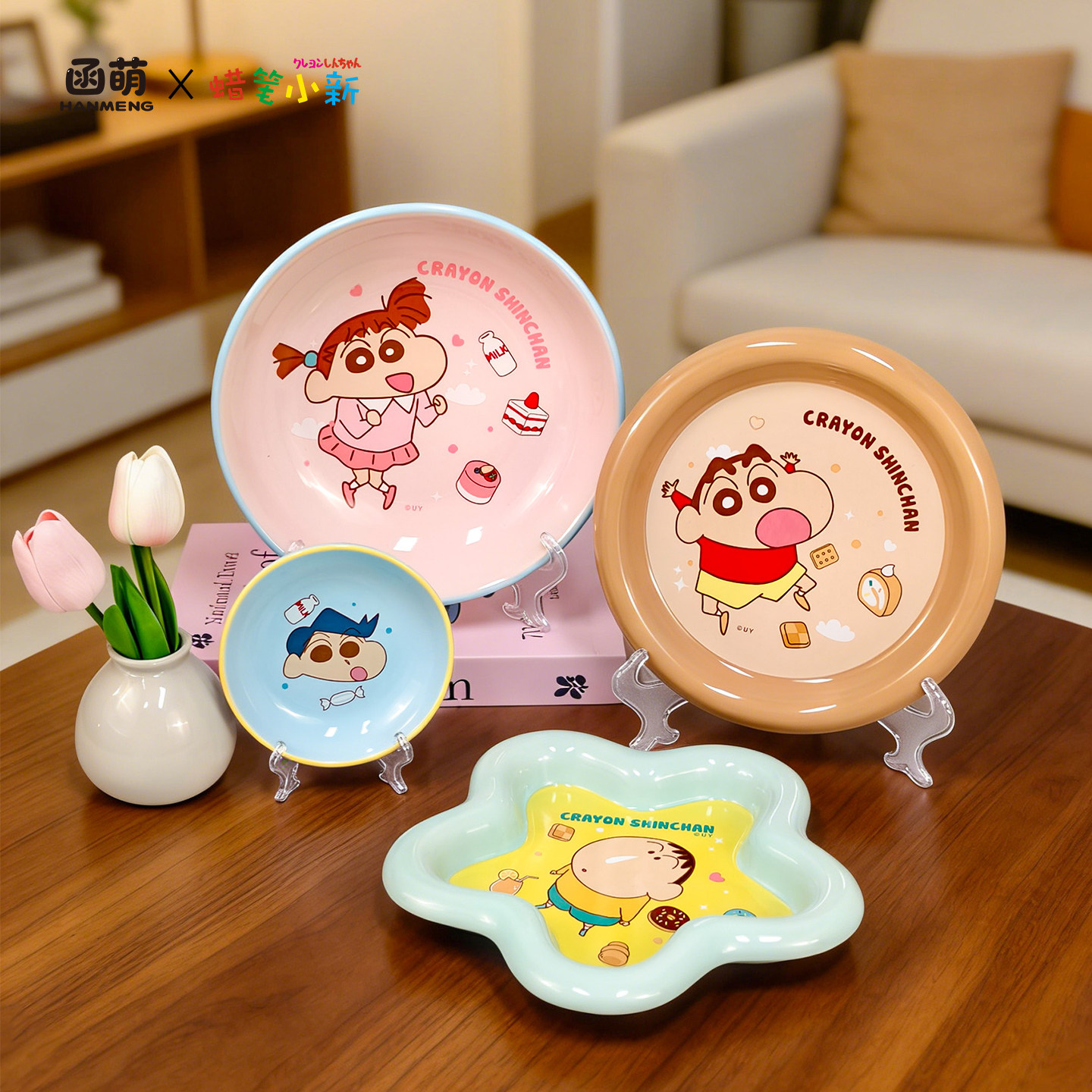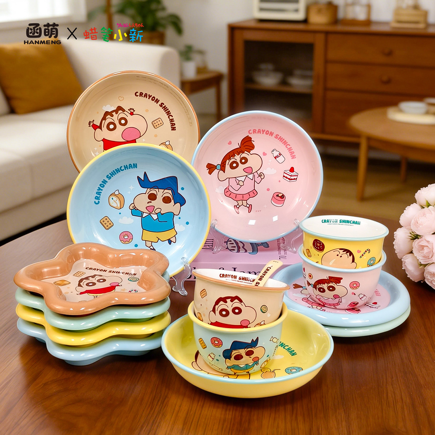 正版联名蜡笔小新朋友系列陶瓷餐具套装可爱卡通儿童高颜值一人食