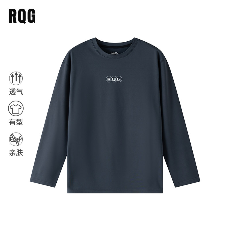 RQG长袖T恤男士圆领宽松休闲百搭上衣2026年春秋季新款时尚潮流