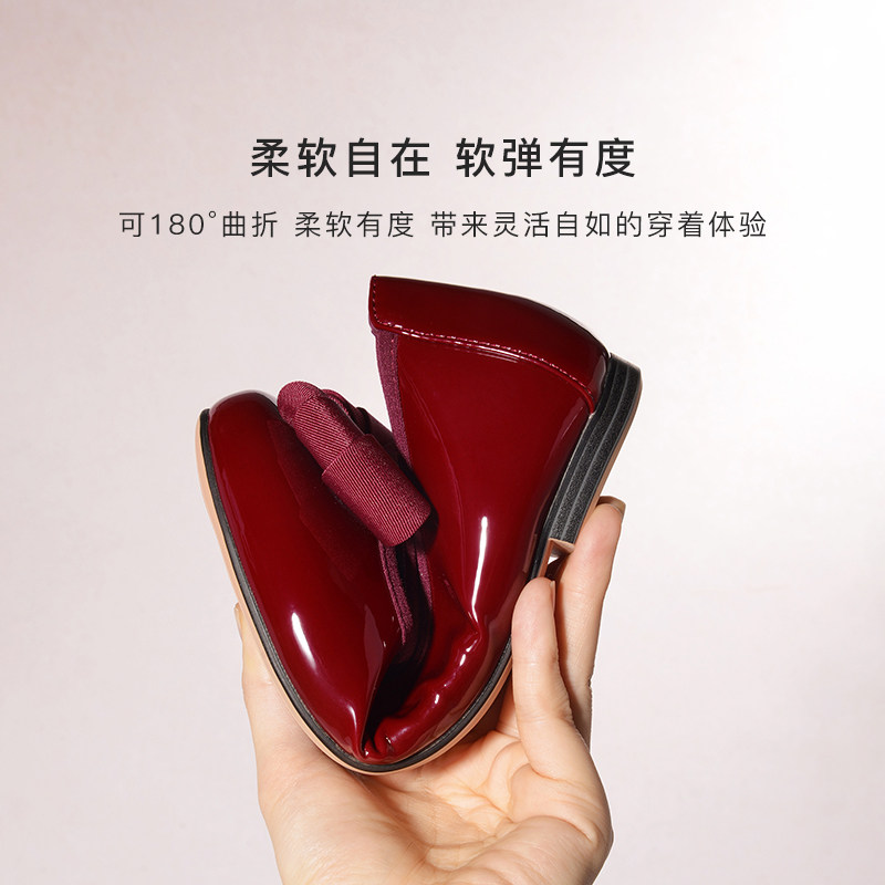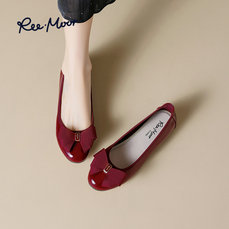 REEMOOR蝴蝶结单鞋小红鞋婚鞋仙女风浅口百搭平底鞋睿慕红色女鞋