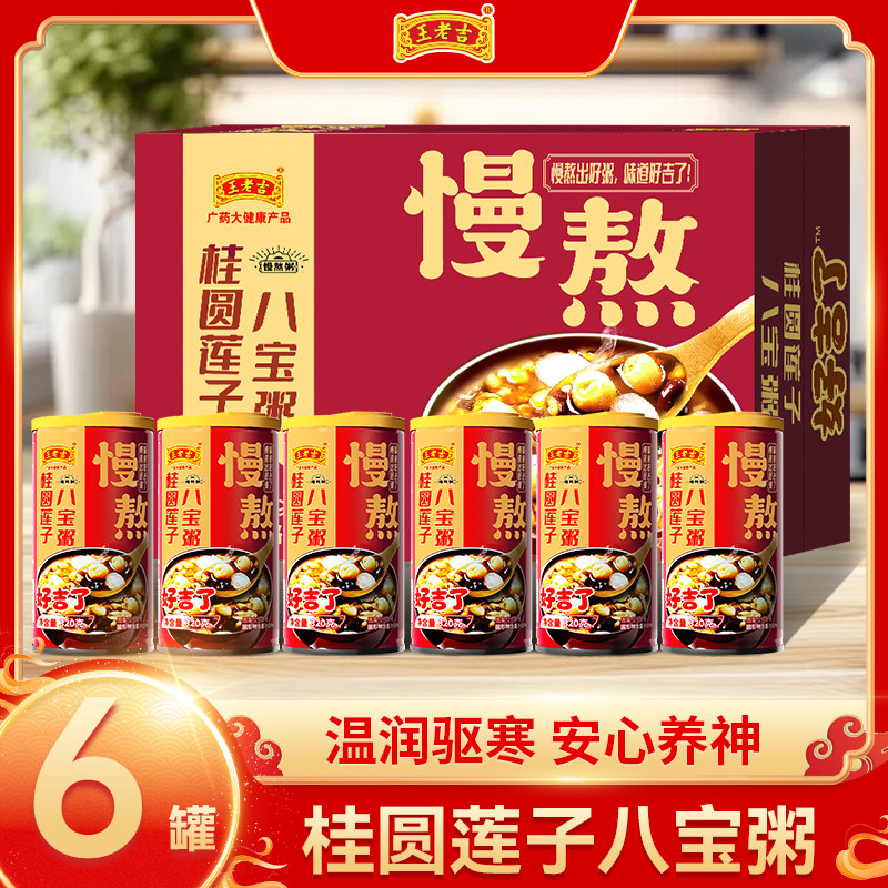 营养八宝粥,桂圆莲子香!6罐实惠装,早餐新选择!学生党必备,晨起一杯王老吉,营养一整天!夜宵好伴侣,王老吉八宝粥,暖心又暖胃!方便快捷代餐,能量满满一整天!美味杂粮粥,健康生活新选择!