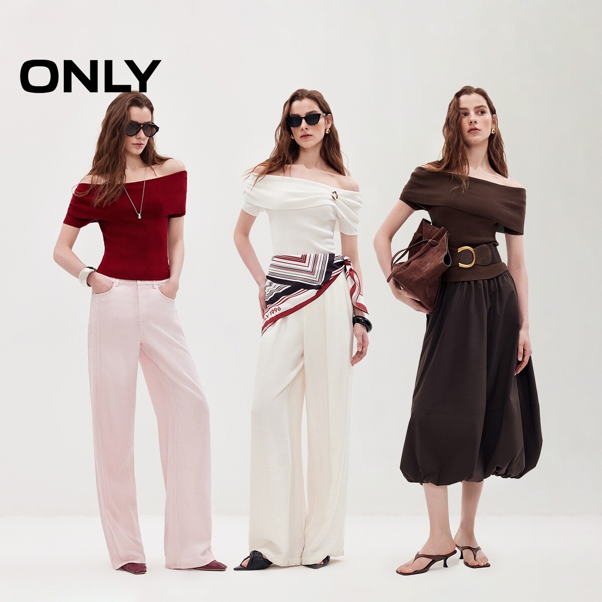 98¥ HU287 fBSg5hJpuOQ¥ https://m.tb.cn/h.iJul91s ONLY2026夏季新款凉感优雅露肩一字领短袖修身显瘦针织衫上衣女