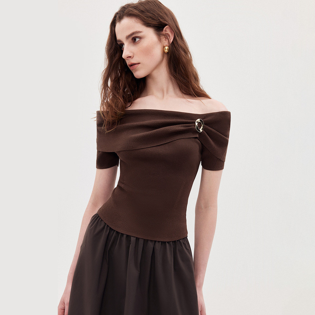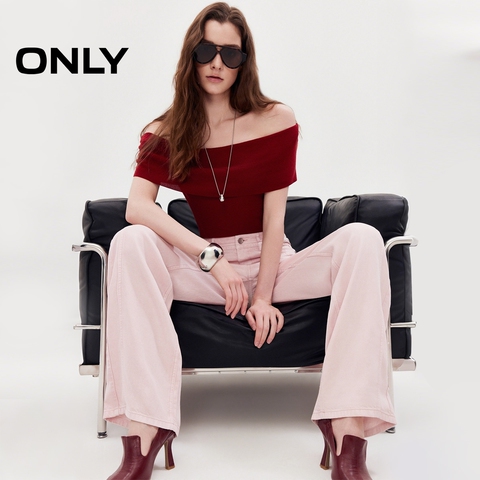 ONLY凉感一字领上衣短袖针织衫