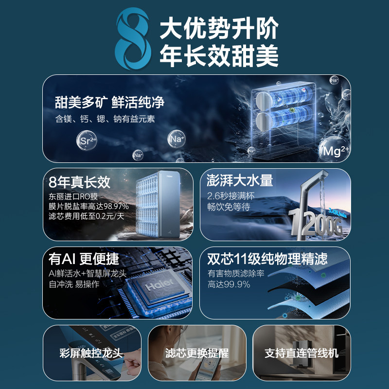 海尔甜美鲜矿水净水器家用直饮机厨房自来水厨卫家庭净水机R857