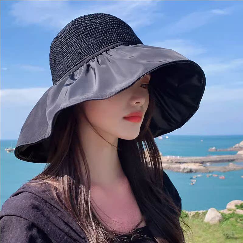 夏季防晒帽女防紫外线春秋新款黑胶遮阳帽大帽檐旅游渔夫帽