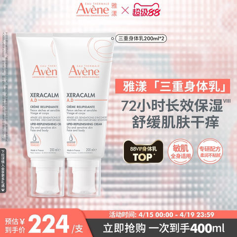 【立即抢购】雅漾三重专研舒缓霜滋润干痒肌肤ad霜三重身体乳官网