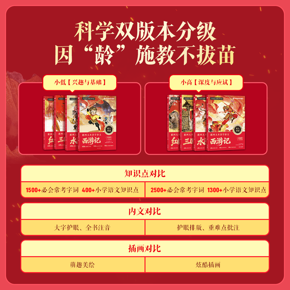 【樊登推荐】学而思小学快乐读书吧四大名著,适配小学1-6年级快乐读书吧,涵盖西游、水浒、红楼、三国,配同步视频讲解,帮孩子轻松读懂经典,提升语文素养,读透四大名著,搞定小学语文!