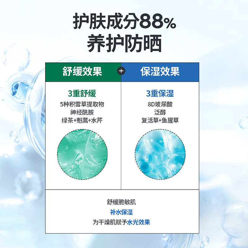 【立减10.1+陶唫币,50g低至24.5】承包一整季的防晒+保湿+修护,学生党、上班族闭眼囤!3重舒缓+3重保湿,深层补水、锁水,SPF50+PA++++高倍防护,焕亮+抗皱+防晒,一支顶三支!