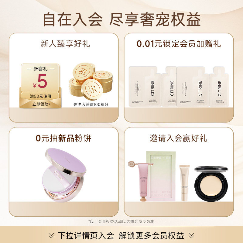 (淘金币4.5元+消费券凑单6.21元+限时红包3元=55.29)【CITRINE春汀礼盒】领35.0亓优惠卷限时特惠琉光限定,品牌信赖之选10g粉饼×1,12g气垫×1,完美妆效升级手感细腻水润不干,持久锁色,魅力随行到手55.29元带走多重好礼,速抢!