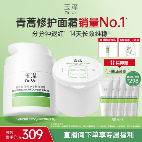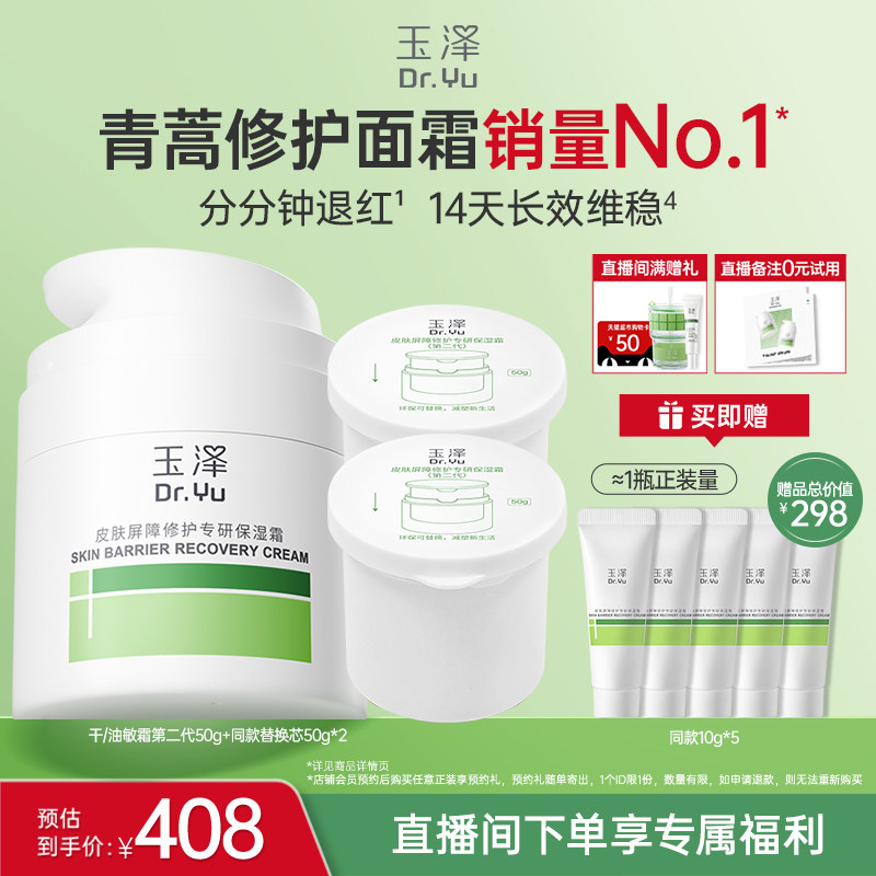 【原价500-立减48-商品券191-88vip95折减15.45-淘金币10-限时红包15到手268.55】玉泽干敏霜第二代,专为干敏肌设计,保湿修护力强!性价比超高,敏感肌必备!