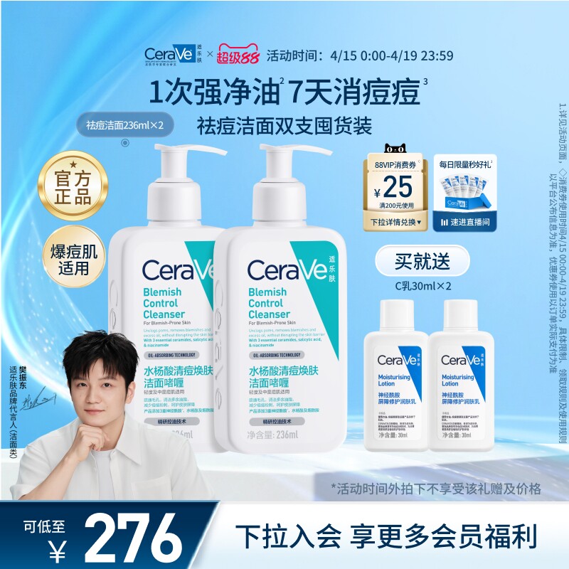 19¥ MF168 Q8gL5hBGFrX¥ https://m.tb.cn/h.iKLINJP CeraVe适乐肤水杨酸洗面奶控油祛痘氨基酸洁面乳青少年官方正品