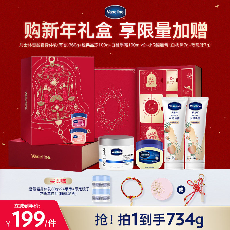 【原价246元-47元券-淘金币4元-限时红包4元=191元】叠加淘金币6-消费券200-25,到手168.98,到手共计780g~】凡士林经典保湿礼盒,滋润全家肌肤,守护冬日温暖。超值优惠,礼尚往来更贴心!