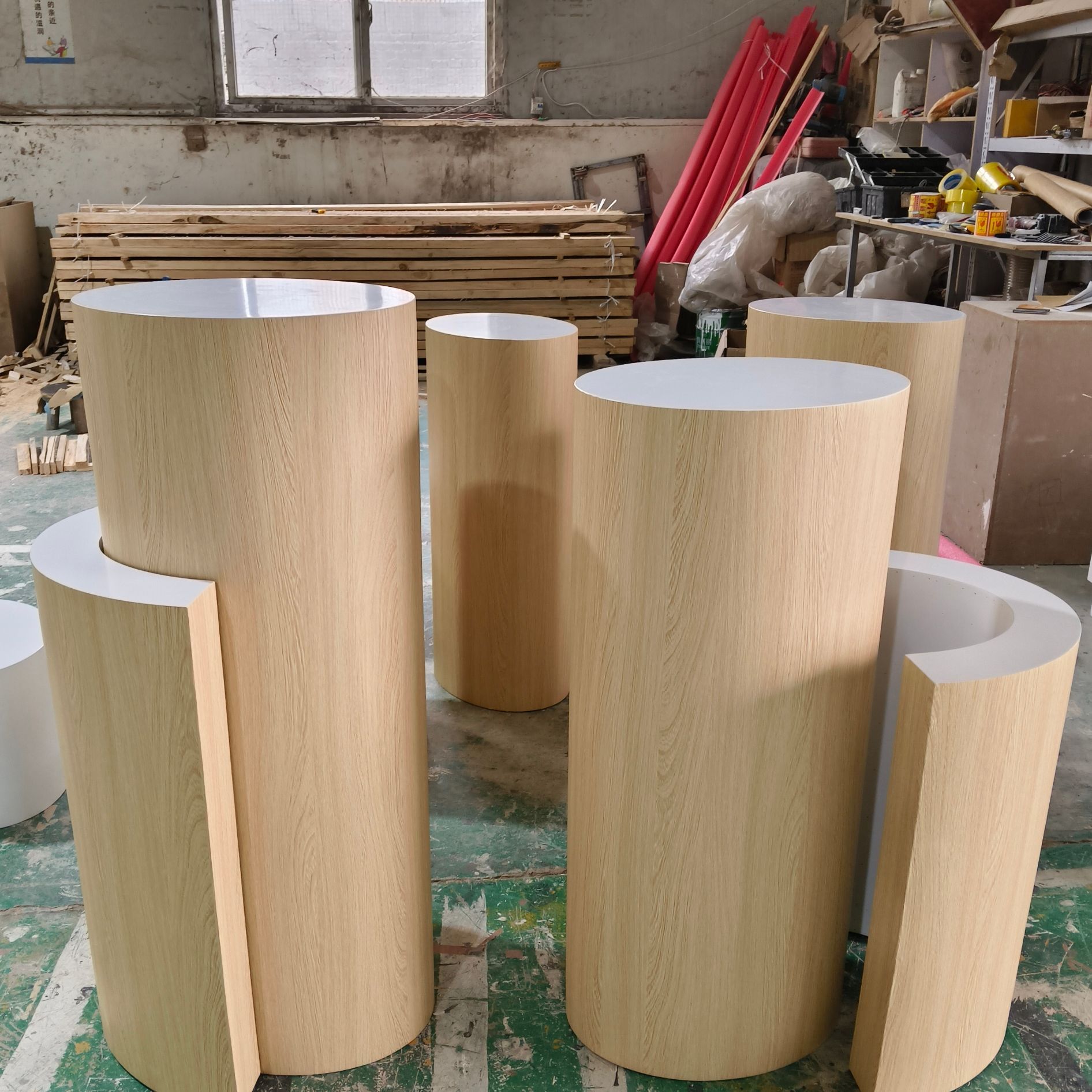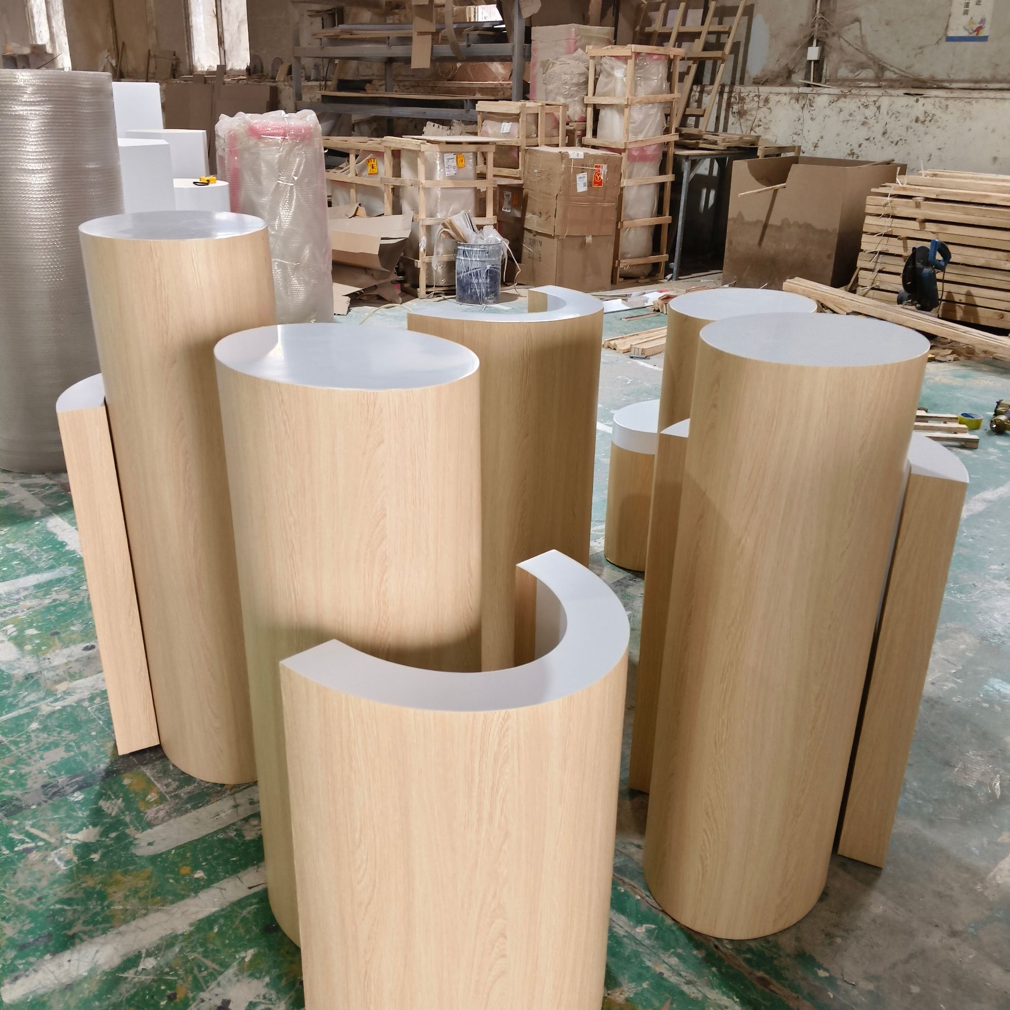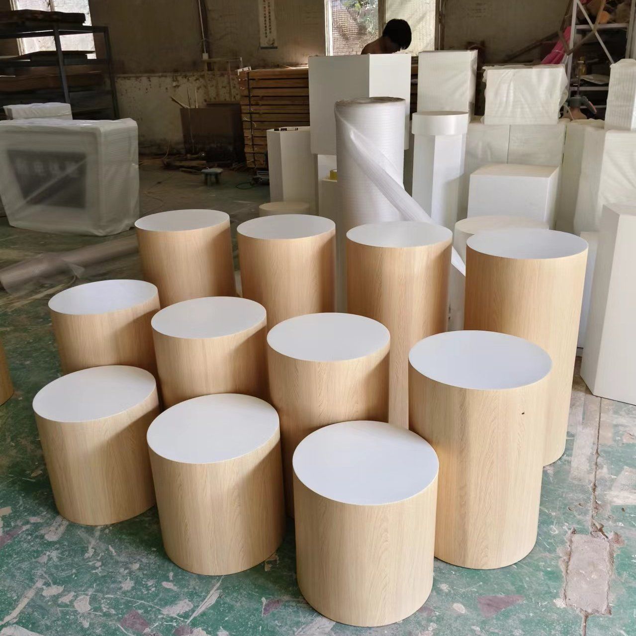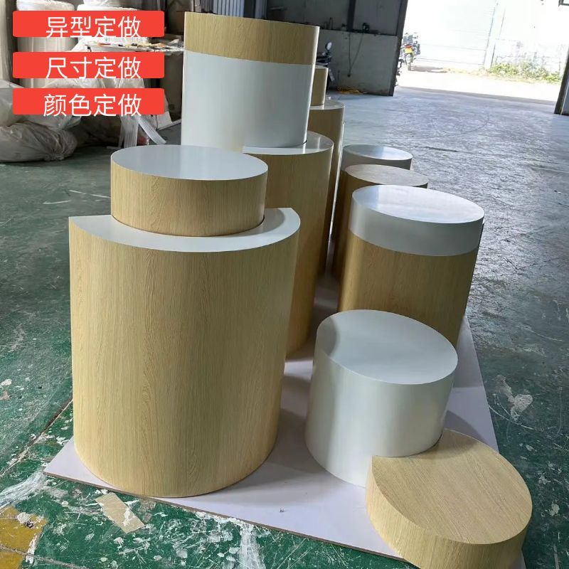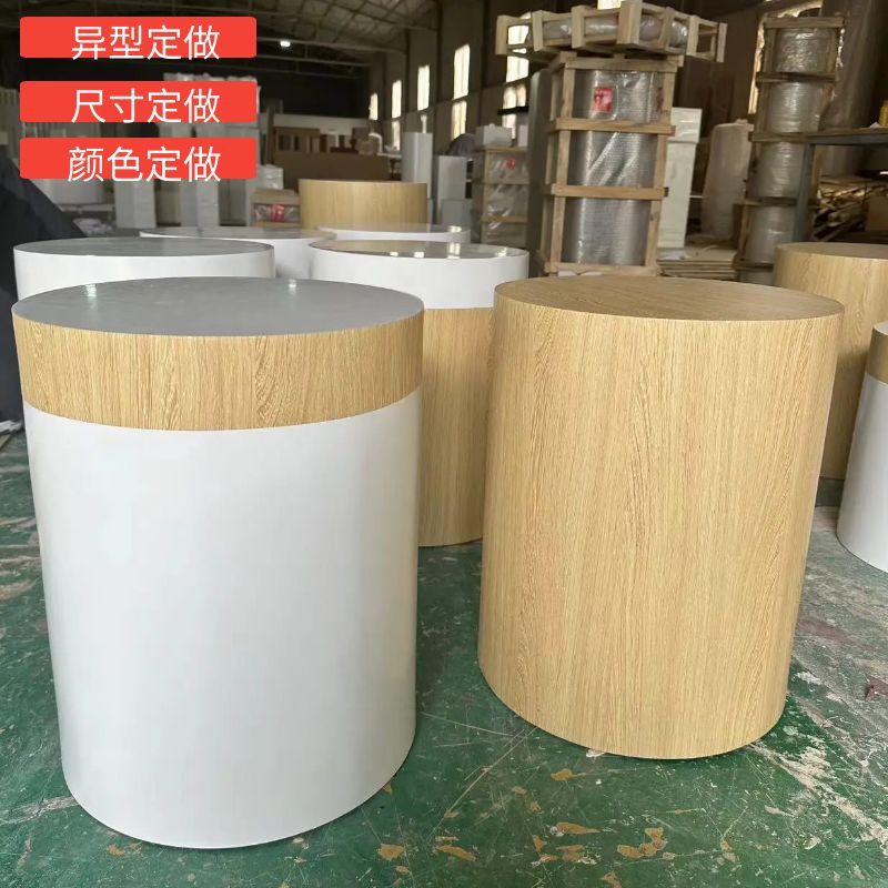 圆形展台木纹定制简约北欧风异形地台增高服装店网红底座烤漆白色