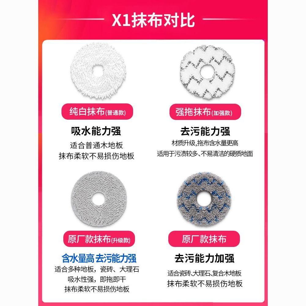 适配科沃斯x1配件扫地机pro地宝滚刷边刷omni清洁液滤网尘袋抹布