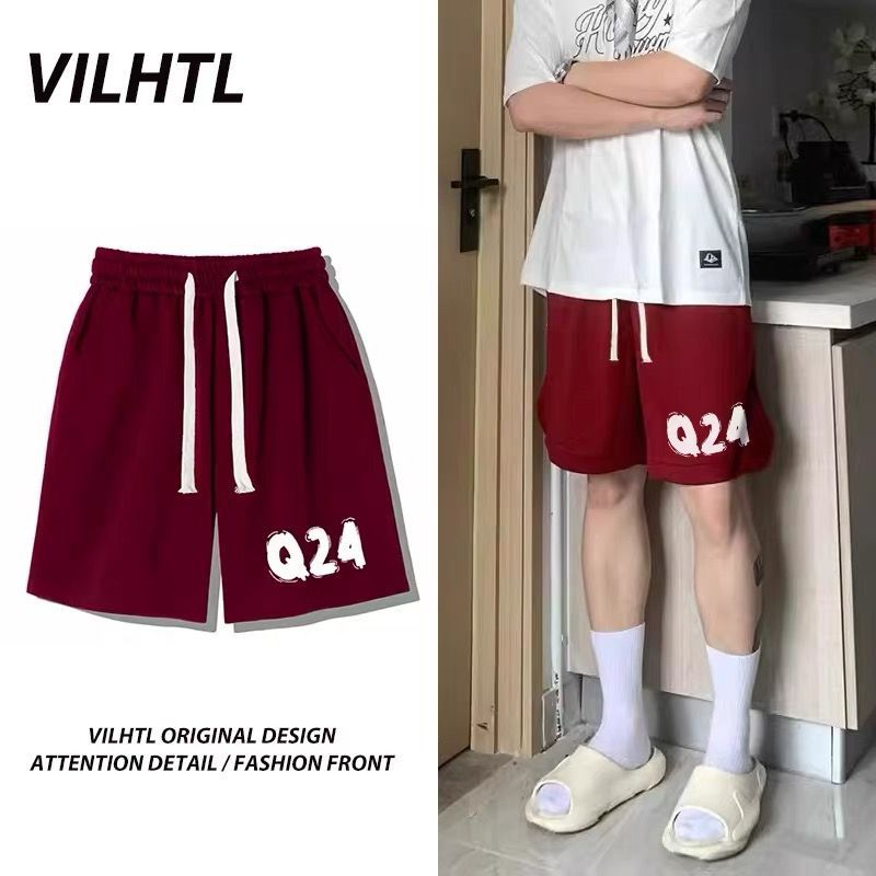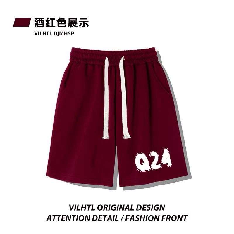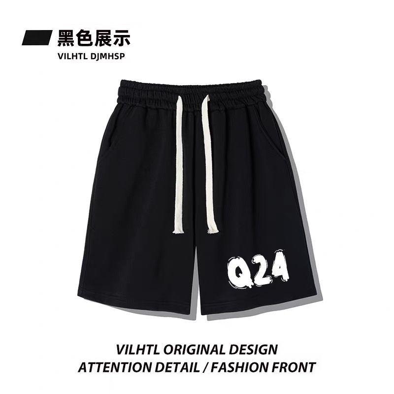 夏季白色字母印花抽绳休闲短裤男美式潮牌ins宽松黑色直筒运动裤