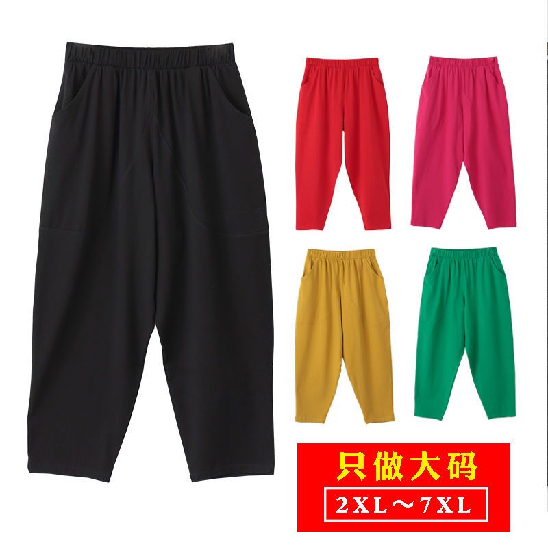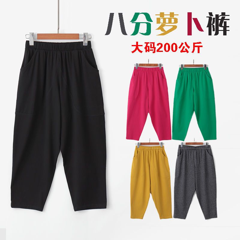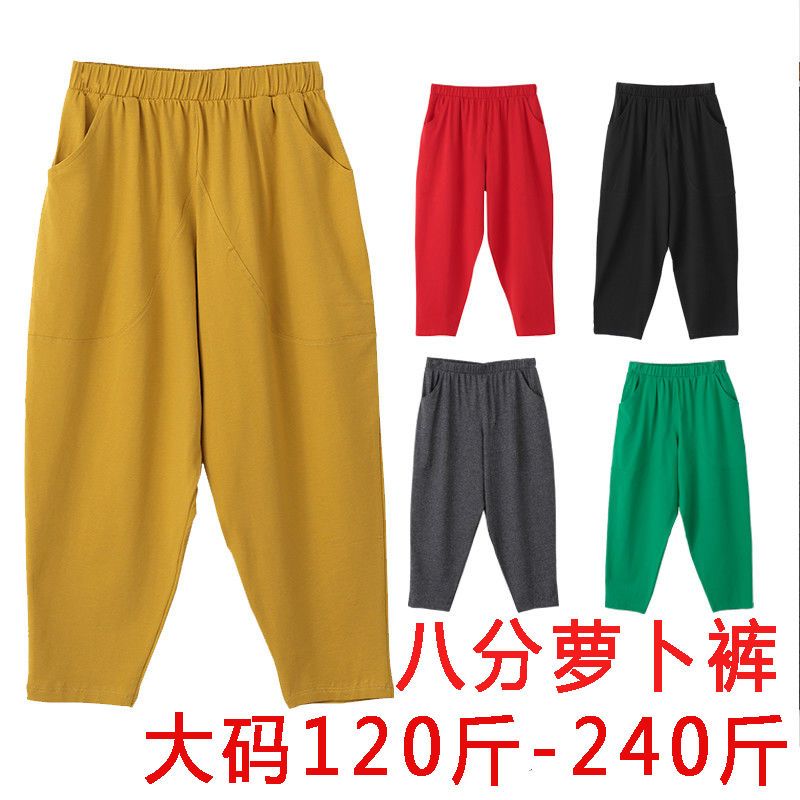 大码萝卜裤女200斤八分裤高腰宽松加肥加大薄款胖MM哈伦裤休闲裤