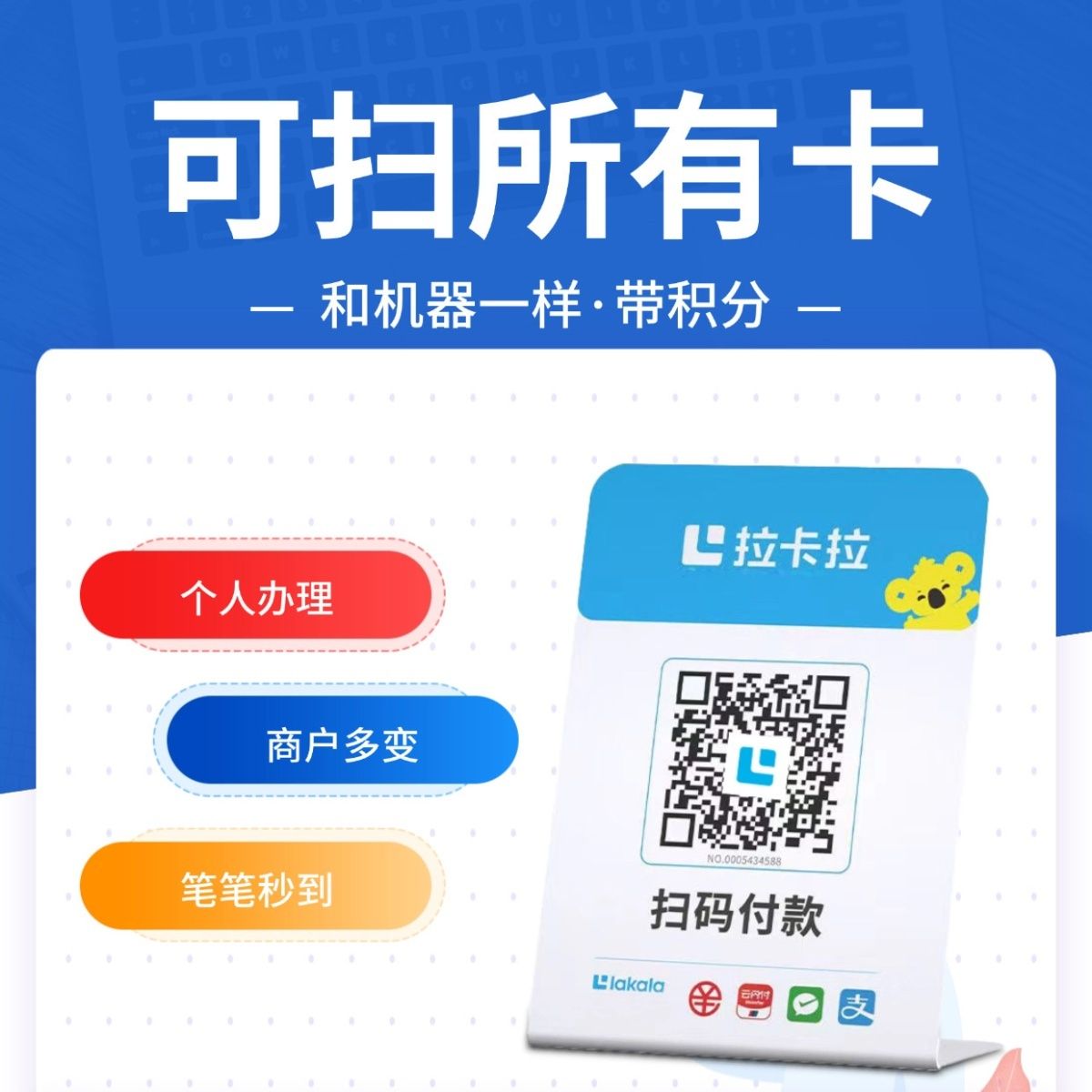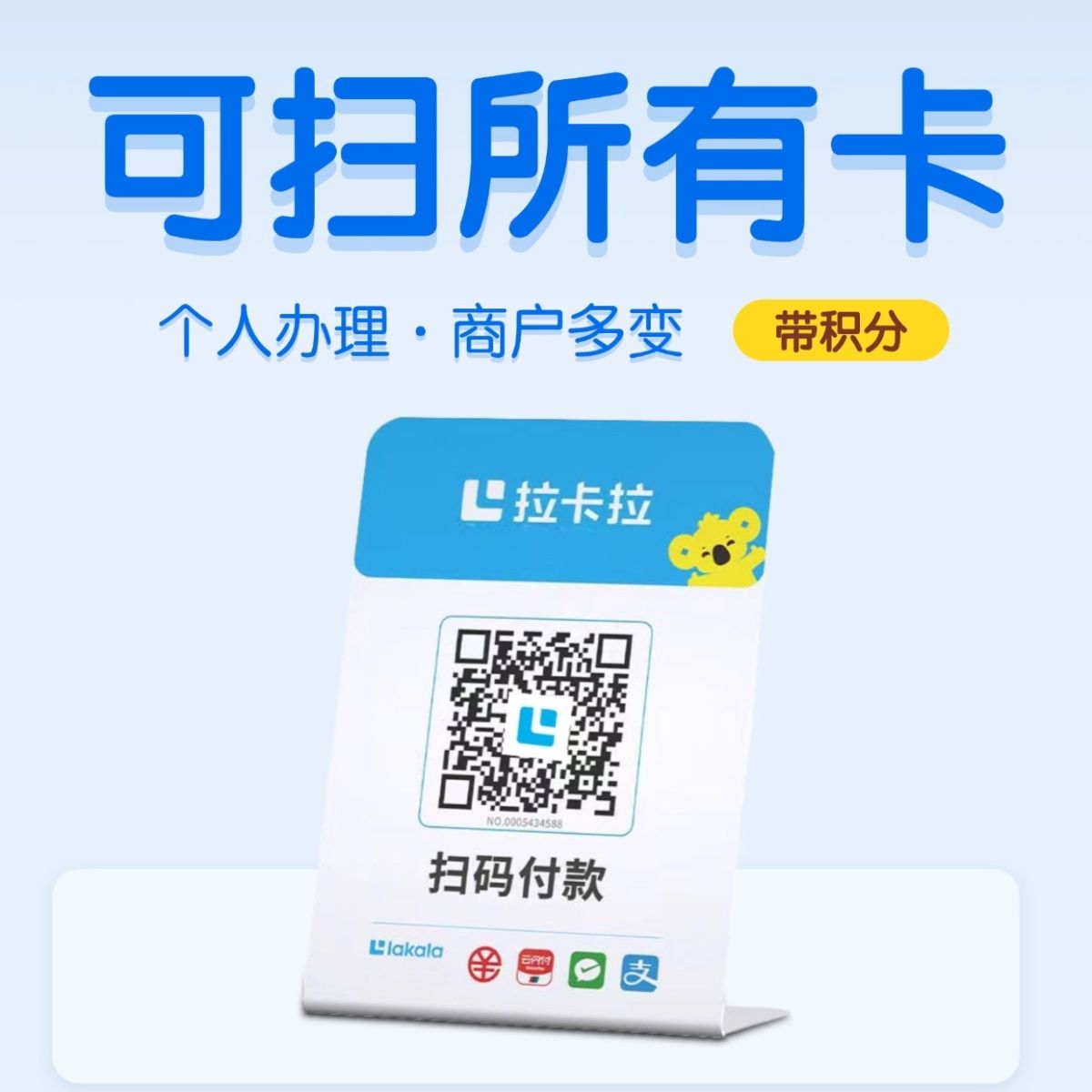 拉卡拉扫码收款移动升级收款牌子扫码支付收款码手持收银吊牌挂牌