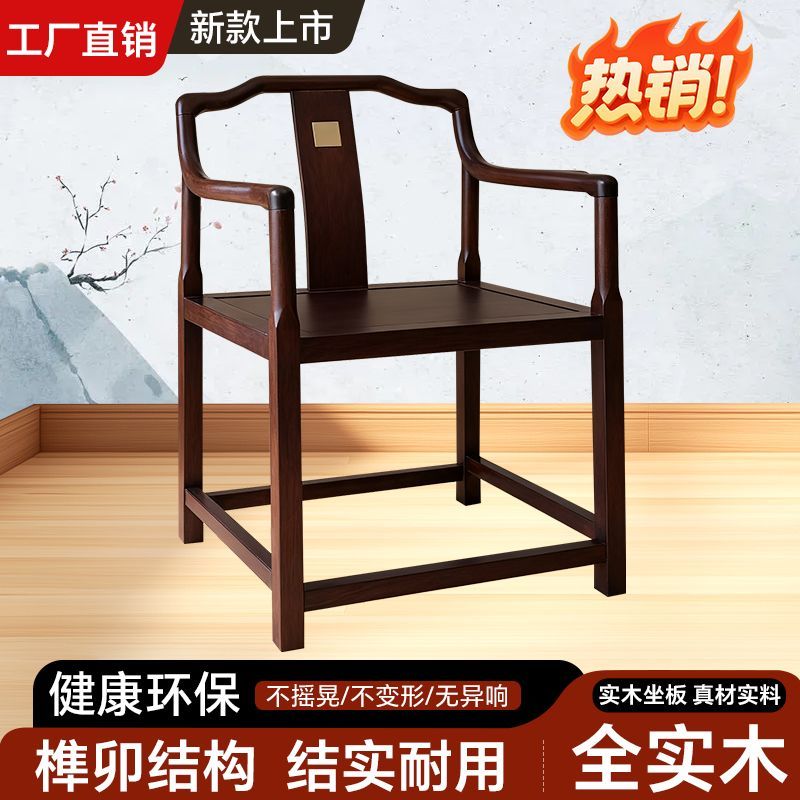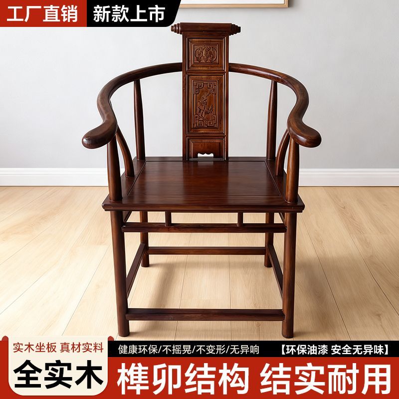 实木圈椅椅子三件套中式围椅太师椅家用茶桌主人茶椅官帽高档仿古