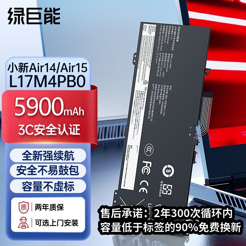 绿巨能联想小新Air 14IWL/15IKBR笔记本电脑电池L17M4PB0电脑电池