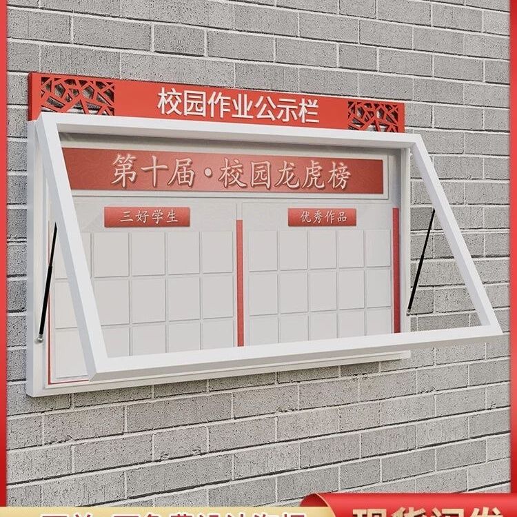 户外墙式宣传栏企业学校液压校园挂墙公告栏开启橱窗镀锌材质定制